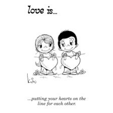 I previously saved the “Love Is” cartoons from the Dallas Morning News which always featured a couple drawn in a precious moments style and a cute saying, like, “love is always kissing her goodnight.” One very aptly read “Love is letting her warm her feet!” This one makes me laugh because my husband HATES cold things touching his skin and he’s always incredibly warm, my feet….not so much…..and I KNOW it’s an act of true love when he sticks his legs up to the bottom of my feet and let’s me warm them! There are a million other things that love is and a million and one that the world will tell you it is.