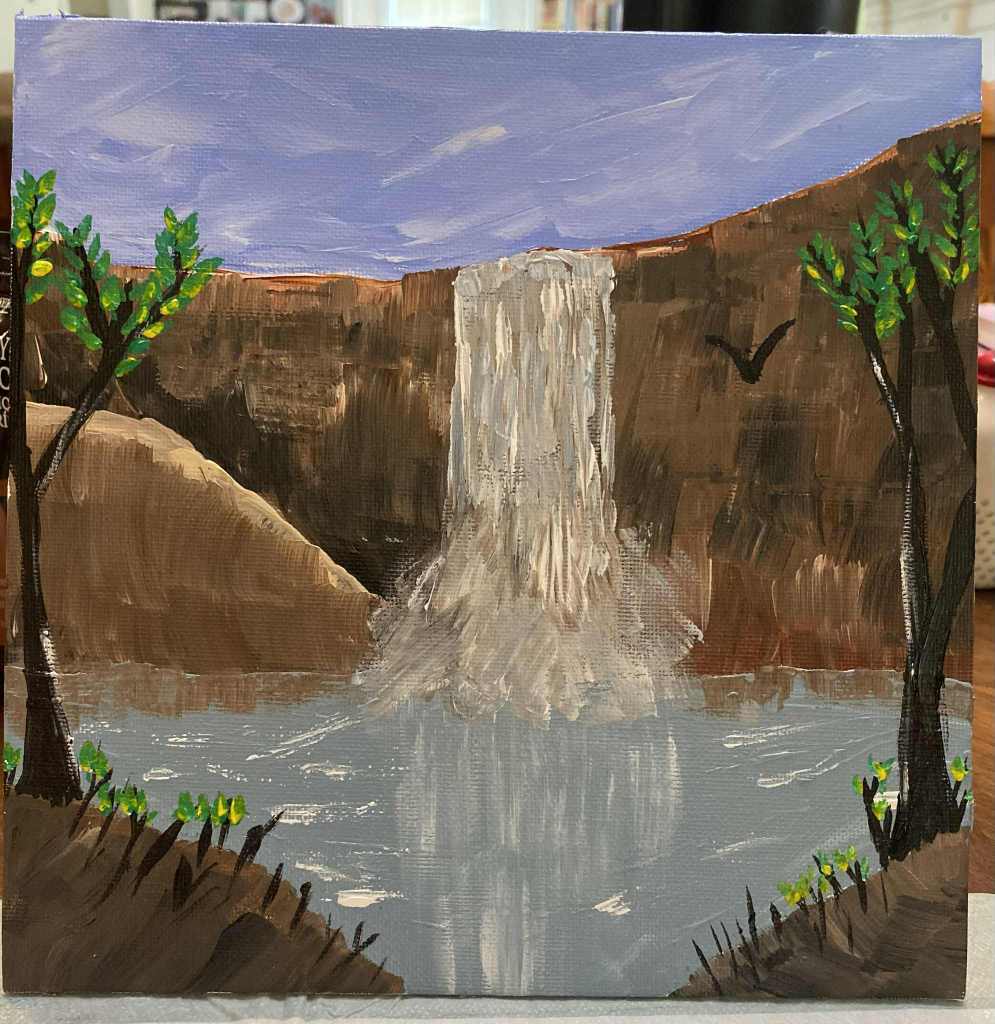 I’ll be honest: I’m not a big risk-taker. In dominoes, I only bid if I’m sure I can win. I rarely leap unless there’s a backup for my backup plan. Trying to become more flexible in this area, I realized painting was a safe, controlled way to take risks. I was honestly terrified to touch that blank canvas with my brush, not knowing if I could follow the directions. The result? My very first painting—proof that sometimes courage is as simple as making the first brushstroke.
